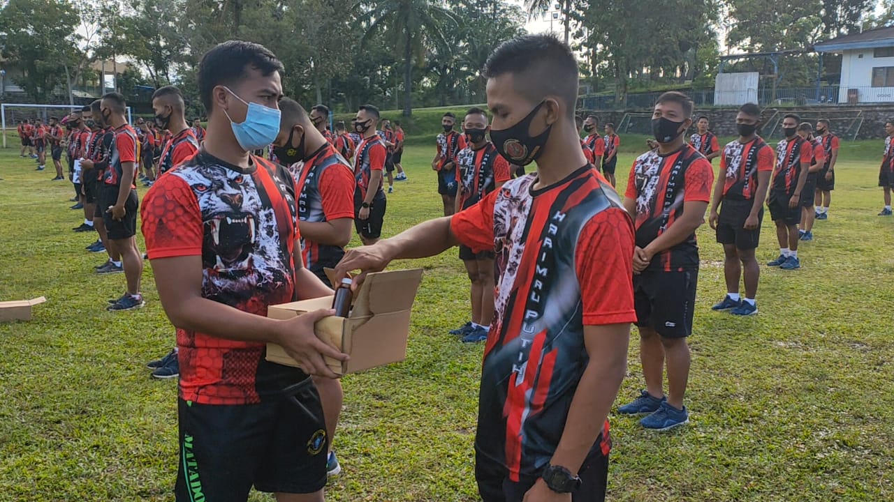 Sumut, skalainfo.net | Dalam rangka meningkatkan daya tahan tubuh Prajurit Batalyon Infanteri 8 Marinir melaksanakan minum herbal bersama-sama usai melaksanakan apel pagi di lapangan sepak bola Yonif 8 Marinir Tangkahan Lagan, Pangkalan Berandan, Langkat,Sumatera Utara , Senin (04/01/2021).