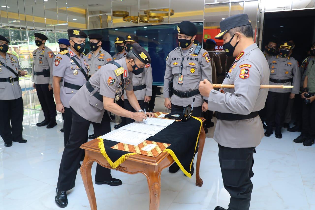 Mutasi dan rotasi jabatan ini sendiri sebenarnya sudah dilakukan sejak 1,5 bulan yang lalu, namun sesuai arahan Kapolri Jenderal Pol Idham Azis, Upacara Sertijab baru boleh dilakukan setelah pengamanan Pilkada Serentak 2020 dan Operasi Lilin dalam rangka pengamanan Natal dan Tahun Baru 2021 berakhir.