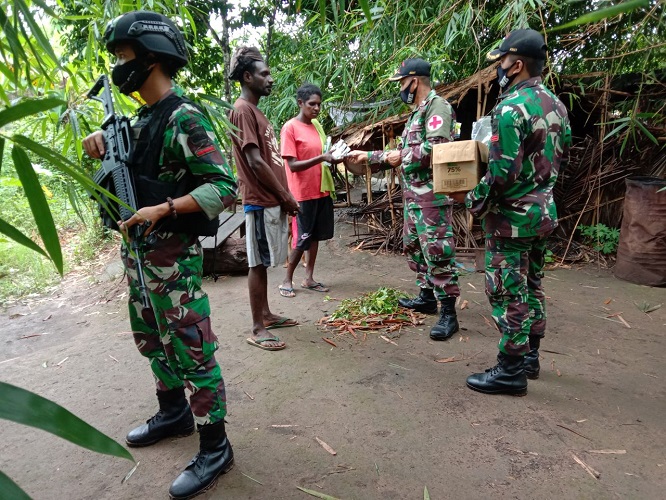 Lebih lanjut dikatakan, pendistribusian hand sanitizer, masker, vitamin dan alat disinfektan kepada aparat pemerintah setempat dipimpin Wadansatgas Kapten Inf Hendri Sihombing dilaksanakan di Balai Kampung Sota. Sedangkan untuk masyarakat yang lain, anggota Satgas membagikannya langsung dari rumah ke rumah (door to door), termasuk juga sekolah.