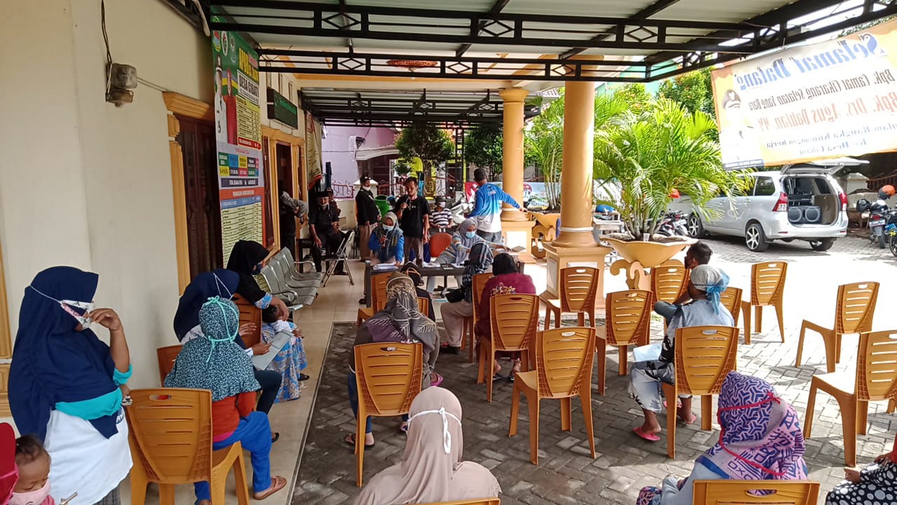 Sebelum melakukan pembagian bantuan sosial tahap sepuluh dari kementrian sosial, para penerima dan pemberi bantuan, terlebih dahulu di periksa suhu tubuhnya sebelum masuk ke dalam kantor Desa, kemudian usia di periksa suhu tubuh, satu persatu di minta untuk mencuci tangan dengan menggunakan sabun yang telah di sediakan petugas.