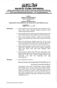 Salah satunya, kata Asrorun juga hasil dari penjelasan auditor LPPOM MUI kemudian pendapat peserta rapat Komisi Fatwa tanggal 8 Januari lalu. “Dan salah satu konsideran pentingnya adalah keputusan dari Badan POM yang telah memberikan persetujuan penggunaan pada masa darurat atau emergency use authorization. Serta jaminan keamanan kemudian mutu serta khasiatnya bagi vaksin Covid produksi Sinovac Life Science ini,” ungkapnya.