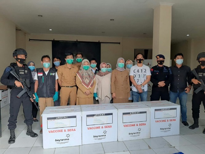 Pendistribusian vaksin tersebut dilakukan dengan pengawalan ketat dengan sejumlah aparat Keamanan.