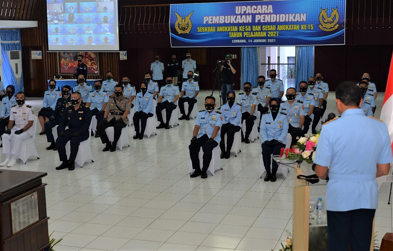 Bandung, Skalainfo.net| “Di era disruptif seperti sekarang ini, pendidikan adalah fondasi esensial yang akan menentukan baik buruk kualitas SDM Angkatan Udara, dimana setiap lembaga pendidikan di Angkatan Udara harus dapat menyesuaikan diri dengan paradigma pendidikan dan laju perkembangan zaman,” ujar Kasau Marsekal TNI Fadjar Prasetyo, S.E., M.P.P., dalam sambutannya yang dibacakan Danseskoau Marsda TNI Samsul Rizal, S.I.P., M.Tr (Han)., saat membuka pendidikan Seskoau Angkatan ke-58 dan Sesau Angkatan ke-15 TP 2021 di Bangsal Srutasala, Seskoau, Lembang, Kamis, 14/01/2021.