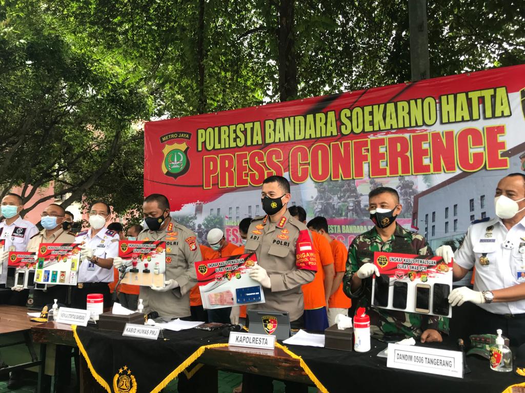 Dalam Press Release nya di Taman Integritas Polresta Bandara Soetta, Senin (18/01/2021) Pukul 09:30 Wib. Kabid Humas Polda Metro Jaya Kombes Pol Yusri Yunus Mengatakan,”Akhirnya Team Garuda Reskrim Polres Bandara Soekarno Hatta meringkus 14 tersangka Warga Negara Indonesia Berinisial, MHJ, M alias A bin MY, ZAP, DS, U alias B, AA, U alias U, YS, SB, S bin N, S alias C, IS, CY, RAS,”Ujar Kombes Pol Yusri Yunus.