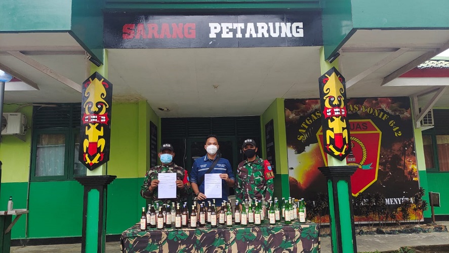 Miras tersebut merupakan hasil tangkapan anggota Pos Panga Satgas Pamtas Yonif 642 pada hari Rabu, 20 Januari 2021 di jalur tikus (jalur pelolosan) wilayah Pos Panga yang berada di Dusun Panga, Kabupaten Sanggau. Sebanyak 48 botol Miras merk Gin diamankan oleh anggota Pos yang sedang melakukan patroli pada Rabu dini hari.