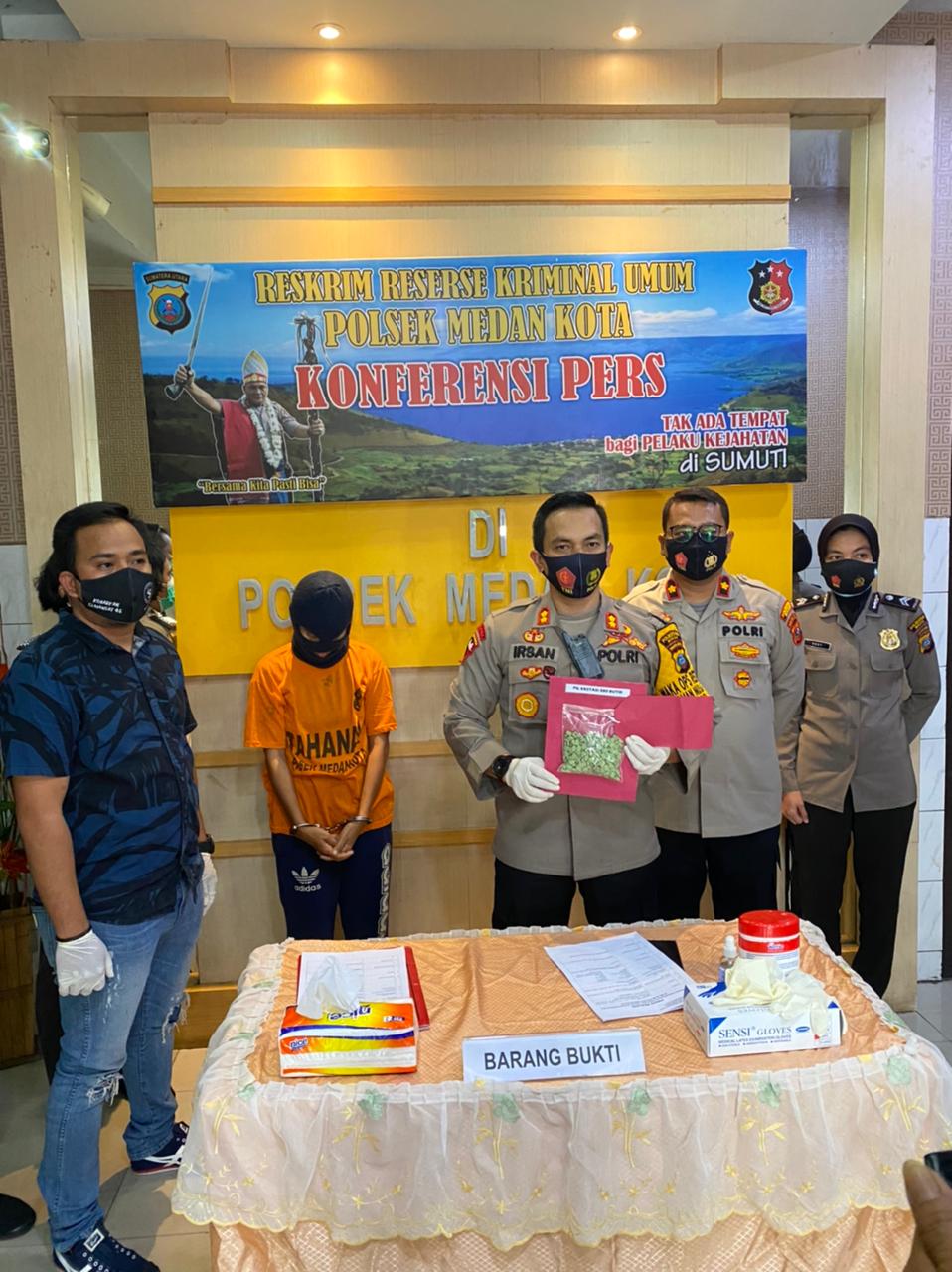 MEDAN, skalainfo.net | Tim Reskrim Polsek Medan Kota berhasil mengungkap peredaran 400 butir Narkotika jenis Ekstasi, Sabtu (02/01/2021) sekira pukul 16.30 Wib di Jalan Teratai Kelurahan. Sari Rejo Kecamatan. Medan Polonia.