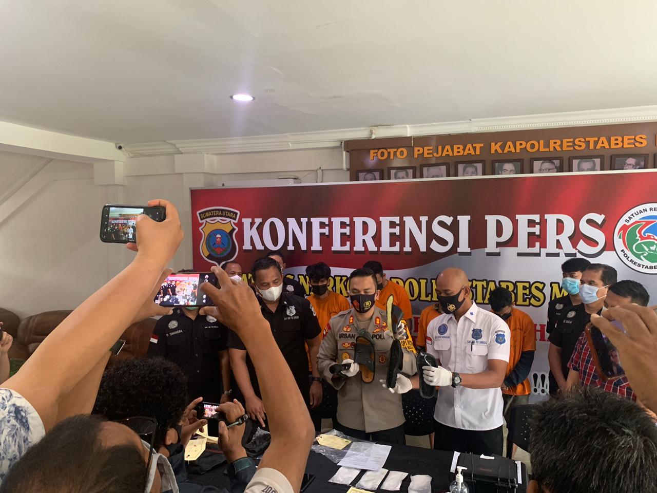 Penangkapan tersebut bermula dari informasi masyarakat adanya empat orang pria yang membawa narkoba di salah satu hotel di Medan. Petugas personel Satresnarkoba Polrestabes Medan yang dipimpin oleh Kasatresnarkoba Kompol Oloan Siahaan langsung melakukan penyelidikan dan berhasil menangkap keempat tersangka pada Selasa (19/01).