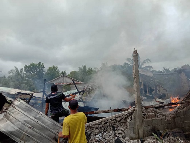 Di tempat terpisah, Danpos Temajuk Letda Inf Ryan Hidayat mengatakan bahwa kebakaran terjadi pada pagi hari sekitar pukul 08.30 WIB. Api berhasil dipadamkan sekitar dua jam kemudian dan untuk kedua korban langsung dibawa ke Puskesmas terdekat untuk mendapatkan pengobatan.