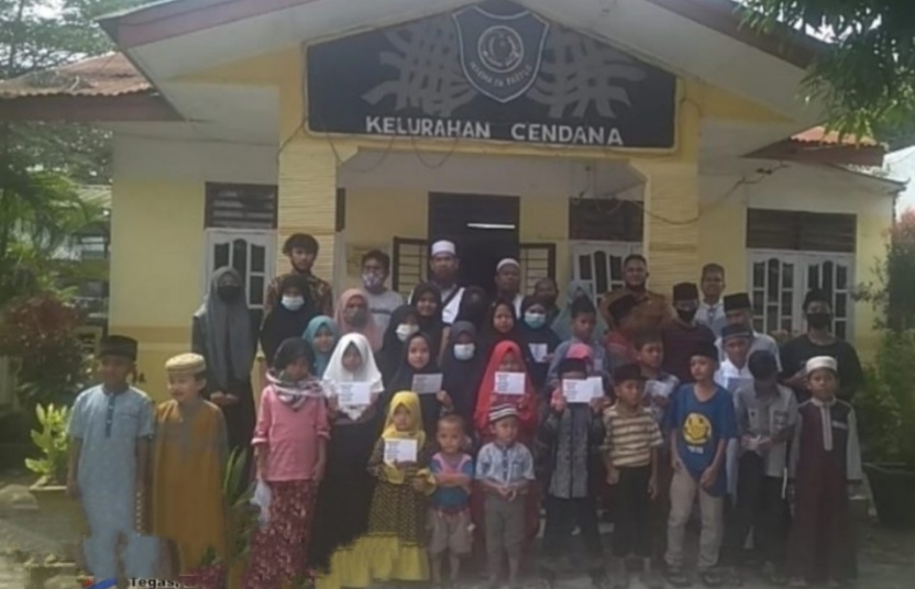 “Semoga uang ini bisa membantu kesulitan dan memenuhi kebutuhan adik adik kita di kelurahan Cendana ini”.ucap Ustadz Iben.