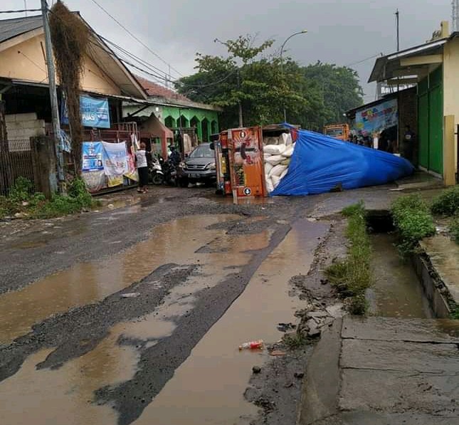 Sungguh ini sangat rawan sekali banyak para pengendara motor dan mobil terjungkal akibat tidak melihat posisi jalan karena tertutup genangan air.