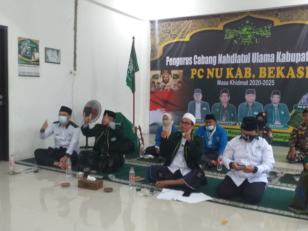 Ketua Tanfidziyah PCNU Kabupaten Bekasi, KH. Komarudin pada kesempatan ini menyampaikan agar seluruh pengurus Majlis Wakil Cabang tingkat kecamatan (MWC) sampai tingkat ranting desa agar senantiasa bisa berkordinasi dengan elemen lembaga-lembaga pemerintahan di sekitarnya guna menjalin konsolidasi komunikasi yang baik agar sejalan hubungan antara umaro dan ulama dalam menjaga keutuhan Negara Kesatuan Republik Indonesia (NKRI).