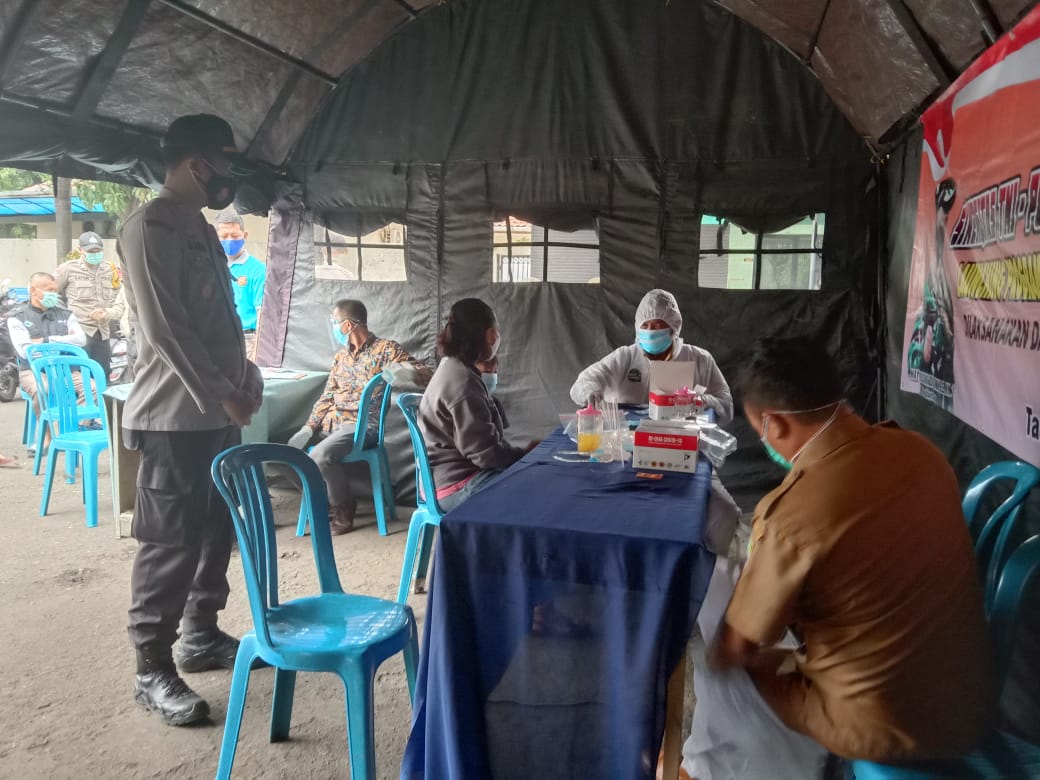Sementara Kapolsek tambun AKP Gana Yudha yang memantau langsung jalannya rapid rest kepada warga yang sempat bersentuhan dan kontak langsung dengan orang yang terinfeksi wabah covid 19.