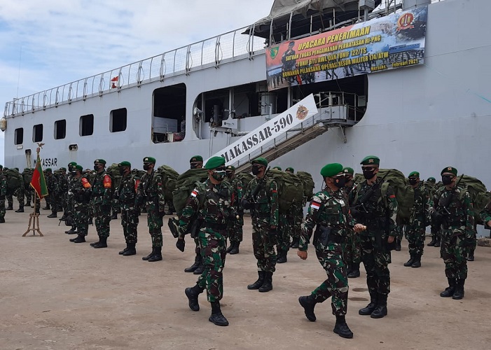 Merauke, Skalainfo.net| Danrem Merauke Brigjen TNI Bangun Nawoko selaku Komandan Komando Pelaksana Operasi (Dankolakops) Korem 174 Merauke, memimpin langsung upacara kedatangan pasukan Satuan Tugas Pengamanan Perbatasan (Satgas Pamtas) RI-PNG di Dermaga Pelabuhan Laut Yos Sudarso Merauke, Kelurahan Maro, Distrik Merauke, Kabupaten Merauke, Selasa, (2/2/2021).