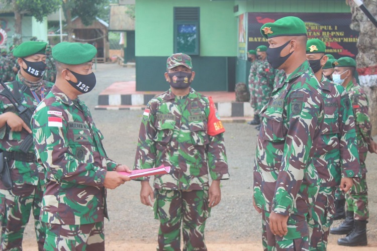 Merauke, Skalainfo.net| Prajurit Yonif 125/Simbisa yang tergabung dalam Satgas Pamtas RI-PNG melaksanakan serah terima tugas sebagai pasukan penjaga wilayah perbatasan RI-PNG sektor selatan dengan Satgas Pamtas Yonif 611/Awang Long.