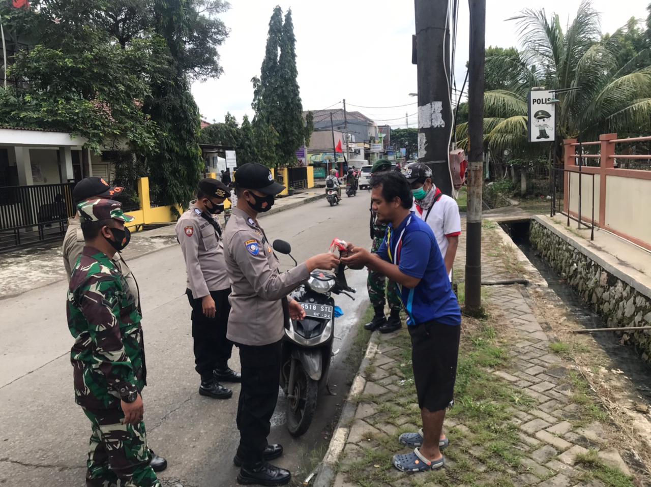 Personel Gabungan dari unsur TNI-Polri , dan pemerintah Daerah Polsek Kelapa Dua melakukan kegiatan operasi yustisi bagikan 350 masker kepada pengguna jalan untuk penegakan Disiplin Protokol Kesehatan di perumahan Dasana Indah Kelurahan Bojong Nangka Kecamatan Kelapa Dua Kabupaten Tangerang,