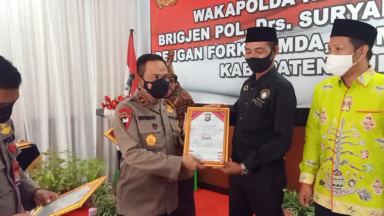 Dalam kesempatan tersebut, Wakapolda juga memberikan penghargaan kepada tokoh lintas agama dan tokoh lintas suku yang ada di Kabupaten Pulang Pisau.