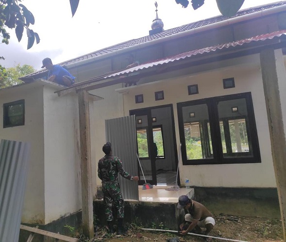 Kalbar, Skalainfo.net| Kekompakan ditunjukan oleh Prajurit TNI Satgas Pamtas RI-Malaysia Yonif 642/Kapuas, Pos Sei Tengah bersama masyarakat, dengan gotong royong melaksanakan karya bakti perehaban Surau Nurul Iman di Dusun Sei Tengah, Desa Sebubus, Kecamatan Paloh, Kabupaten Sambas, Provinsi Kalimantan Barat.