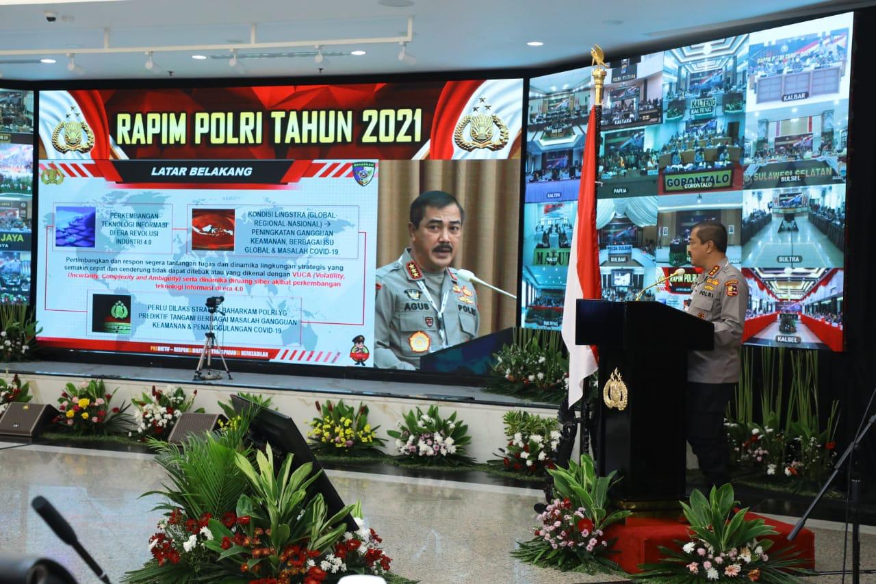 JAKARTA, skalainfo.net | Kepala Badan Pemelihara Keamanan (Kabaharkam) Polri, Komjen Pol Agus Andrianto, memberikan pengarahan pada Rapat Pimpinan (Rapim) Polri Tahun 2021, di Mabes Polri, Jakarta, Rabu, 17 Februari 2021.