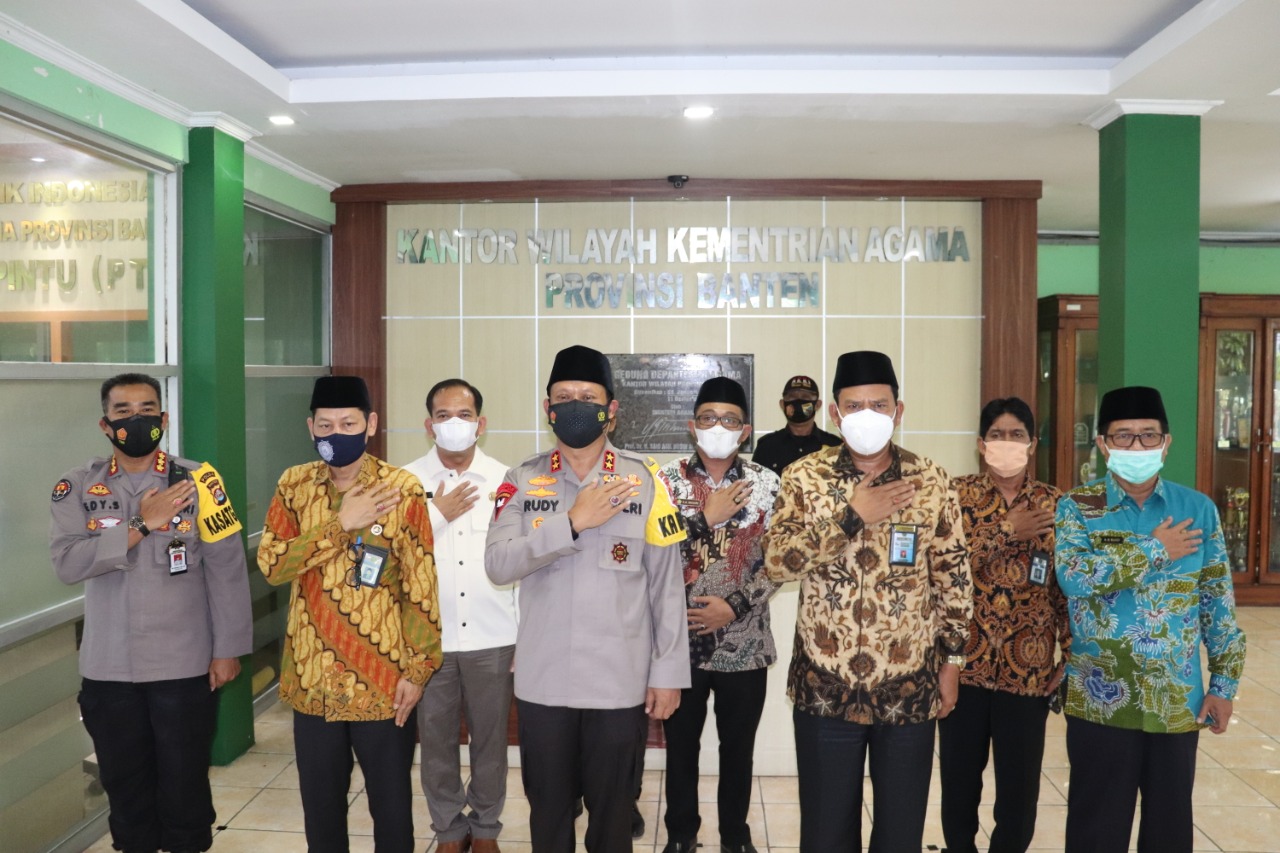 SERANG, skalainfo.net | Kapolda Banten Irjen Pol. Dr. Rudy Heriyanto Adi Nugroho. S.H., M.H,.M.B.A silaturahmi Ulama Umaro yang merupakan Commander Wish Kapolda Banten yang ke dua ke Kantor Wilayah Departemen Agama Provinsi Banten, Kamis (18/2/2021) Pukul 11:00 Wib.