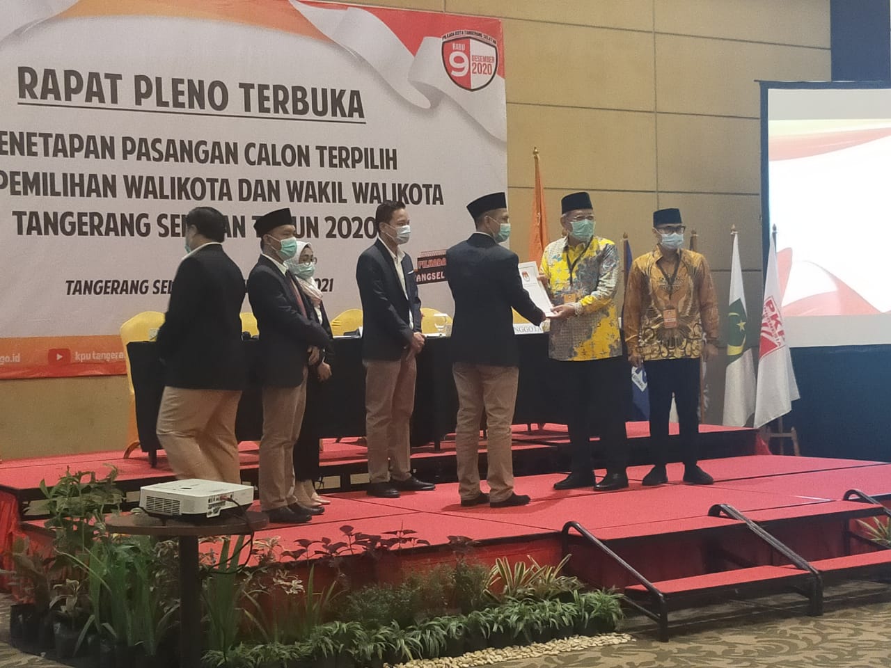 Paska 17 Desember 2020 telah melaksanakan pleno, rekapitulasi hasil dari masing-masing paslon kemudian bersama mengetahui berproses di Mahkamah Konstitusi(MK) dan sesuai dengan keputusan Mahkamah konstitusi Republik Indonesia no.115/PLP dan seterusnya Serta Surat panitia MK Republik Indonesia no.83.115 dan seterusnya.Pada hari ini tanggal 20/2/21 KPU Tangsel melaksanakan amanat MK Rapat Pleno penetapan Walikota dan wakil Walikota terpilih.
