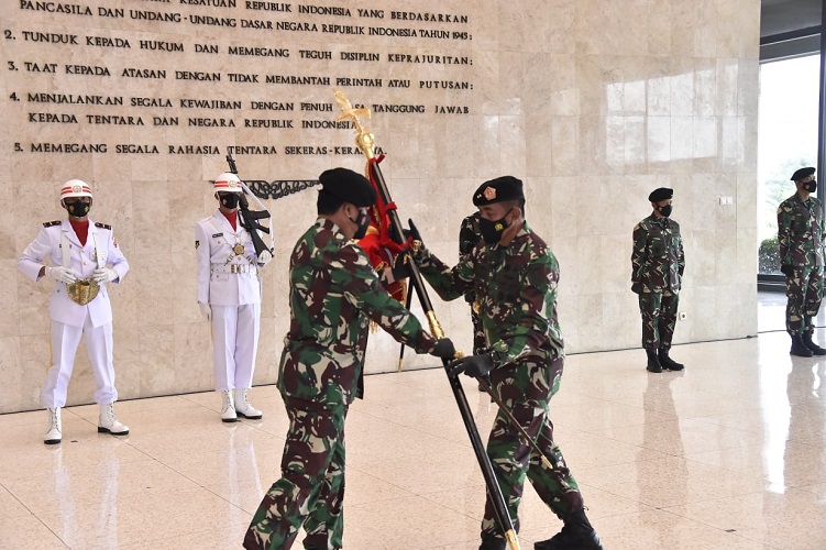Jakarta, Skalainfo.net| Panglima TNI Marsekal TNI Hadi Tjahjanto, S.I.P., memimpin upacara penyerahan jabatan Panglima Komando Gabungan Wilayah Pertahanan (Pangkogabwilhan) III dan Serah Terima Jabatan (Sertijab) Komandan Detasemen Markas (Dandenma) Mabes TNI, bertempat di Mabes TNI, Cilangkap, Jakarta Timur, Kamis, 25/2/2021.