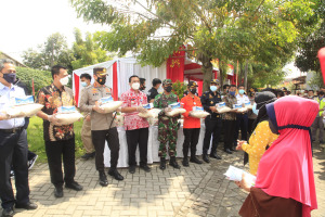 Turut dibagikan 3.000 (Tiga Ribu) Masker Medis kepada warga untuk dapat memperkuat pencegahan penyebaran Covid-19 beserta 165 (Seratus Enam Puluh Lima) Bungkus Beras @ 5 Kg dalam acara Bakti Sosial.