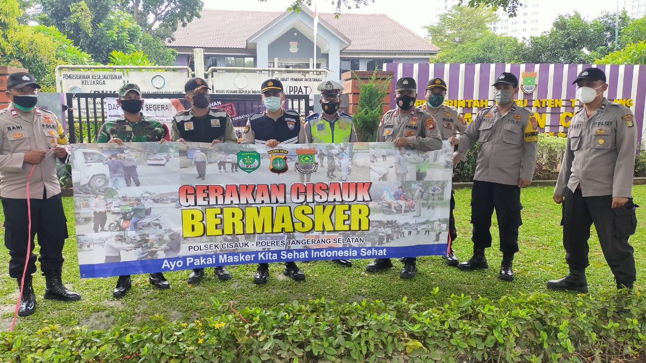 Giat pembagian masker oleh Polsek Cisauk dan 3 Pilar dilaksanakan di Jalan Lapan – Cisauk di depan Kantor Kecamatan Cisauk, Desa Sampora, Kecamatan. Cisauk Tangerang, kepada Masyarakat yang melintas jalan kaki maupun menggunakan kendaraan Roda 2 maupun Roda 4 atau lebih dengan personil sebanyak 12 Personil dengan Rincian sebagai berikut :
