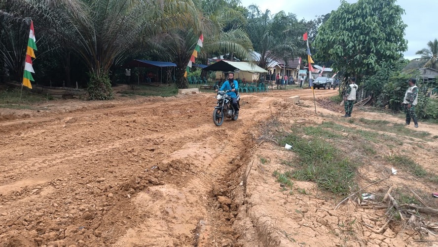 Sambas, Skalainfo.net| Meskipun penambahan tanah untuk jalan dalam rangka program TNI Manunggal Membangun Desa Reguler ke-110 Tahun 2021 Kodim 1201/Mempawah belum selesai, namun warga Desa Tolok sudah mulai bisa menggunakan sebagian jalan.
