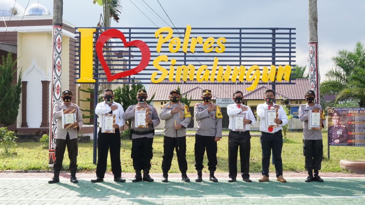 Simalungun, skalainfo.net | Kapolres Simalungun Akbp Agus Waluyo, S.I.K., berikan penghargaan kepada personel yang berprestasi dilingkungan Polres Simalungun guna mendukung SDM Polri yang Unggul di Era Police 4.0, dilapangan Apel Polres Simalungun Jln.Jhon Horailam Pematang Raya Kabupaten Simalungun.(01/03/2021).