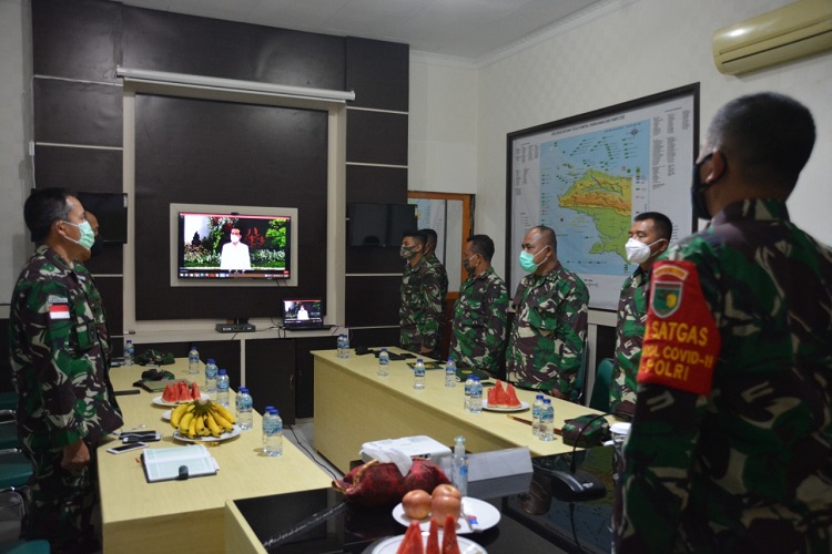 Merauke, Skalainfo.net| Danrem 174/ATW Merauke Brigjen TNI Bangun Nawoko mengikuti pembukaan Rapat Koordinasi Nasional (Rakornas) Penanggulangan Bencana Alam Tahun 2021 secara virtual, bertempat di Ruang Rapat Staf Operasi Makorem 174 Merauke.