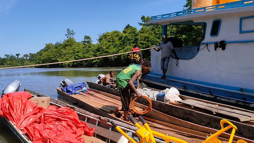 “Dengan menempuh jarak yang lumayan jauh melewati medan sungai dan membawa bahan bangunan, tidak menjadi beban bagi kami yang mambawa material atau bahan bangunan untuk di bawa ke lokasi,” tambahnya.
