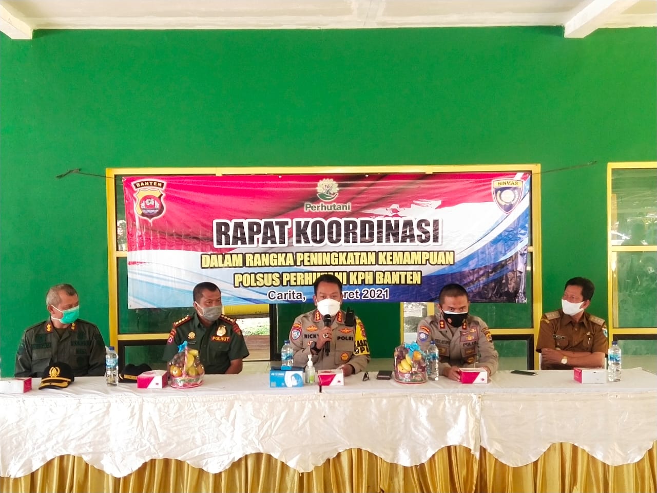 CARITA, skalainfo.net | Dirbinmas Polda Banten Kombes Pol Riki Yanuarfi, S.H., M.Si hadiri pembukaan rapat koordinasi terkait peningkatkan kemampuan Polsus Perhutani KPH Banten.