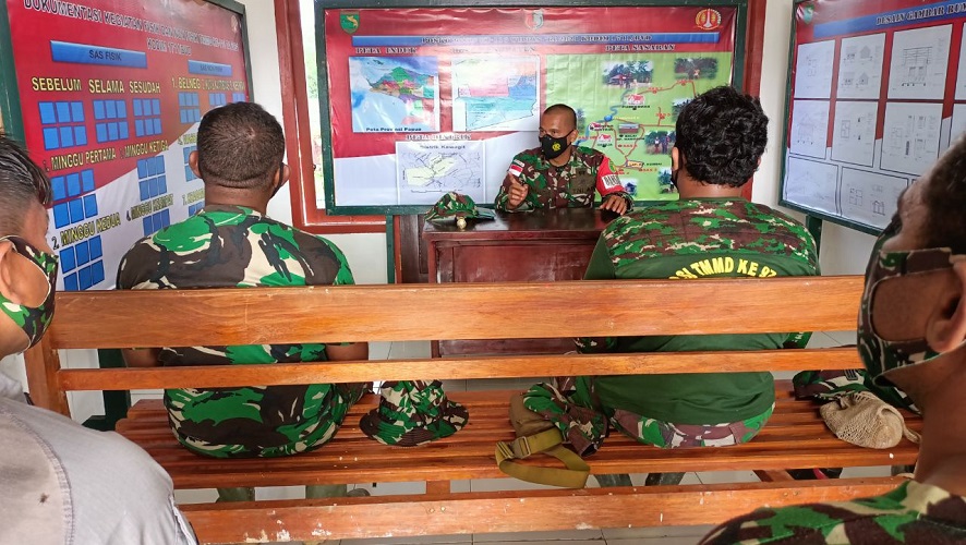 Boven-Digoel, Skalainfo.net| Memasuki satu minggu pelaksanaan TNI Manunggal Membangun Desa (TMMD) Reguler ke-110 Kodim 1711/Boven Digoel, Komandan Kodim 1711/BVD Letkol Czi Daniel Panjaitan selaku Dansatgas TMMD memimpin rapat evaluasi pelaksanaan TMMD, bertempat di Posko TMMD ke-110 Kodim Boven Digoel, Kampung Wanggom, Distrik Kawagit, Kab. Boven Digoel, Rabu, 10/3/2021.