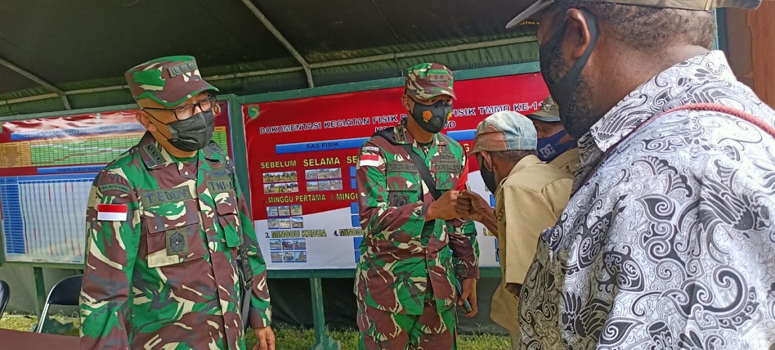 Boven-Digoel, Skalainfo.net| Disela-sela kunjungan kerjanya, Asisten Teritorial (Aster) Kasdam XVII/Cen Kolonel Inf Teddy Arifianto Setimiharja menyempatkan diri berinteraksi dengan warga yang berada disekitar lokasi TNI Manunggal Membangun Desa (TMMD) ke-110 Kodim 1711/BVD di Distrik Kawagit, Kabupaten Boven Digoel, Papua, Sabtu, (13/3/2021).