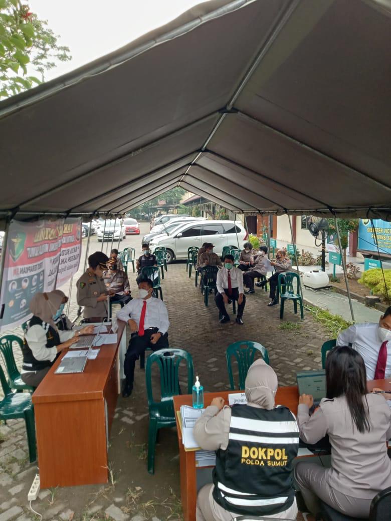 Dalam proses vaksinasi, Nainggolan menuturkan pegawai Aparatur Sipil Negara (ASN) Polda Sumut turut mendapatkan suntikan vaksin Covid-19 tersebut.