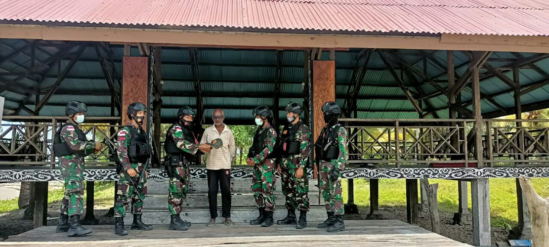 Jayapura-Papua, Skalainfo.net| Dalam rangka membina hubungan baik dengan Tokoh Adat dan Masyarakat setempat, Komandan Pos (Danpos) Ramil Tami Satgas Pamtas Yonif 131/Braja Sakti Lettu Inf Jinopen Arman beserta beberapa personel pos, melaksanakan anjangsana ke rumah Bapak Yann Mallo (62 th) selaku Ondo Api di Kampung Skouw Mabo, Senin, 15/3/2021.