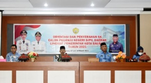 Orientasi yang diselenggarakan oleh Badan Kepegawaian dan Pengembangan Sumber Daya Manusia (BKPSDM) Kota Baubau tersebut dirangkaikan dengan penyerahan SK 80% oleh Walikota Baubau yang didampingi oleh Sekretaris Daerah Kota Baubau Dr. Roni Muhtar, M.Pd.