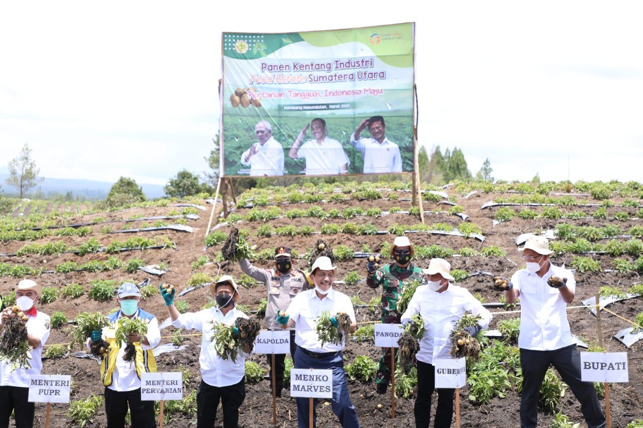 Dalam kunjunganya ke tiga menteri Presiden Joko Widodo itu melaksanakan panen kentang serta pengembangan food estate di Desa Ria-Ria, Kabupaten Humbahas.