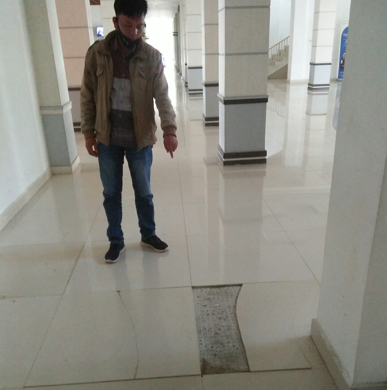 Labuhanbatu, Skalainfo.net | Keramik lantai gedung A kantor Bupati Labuhanbatu, Propinsi Sumatera Utara (Sumut) yang dilapisi keramik sudah banyak yang nyaris terlepas, bahkan salah satu sudah ada yang pecah dan terkelupas.