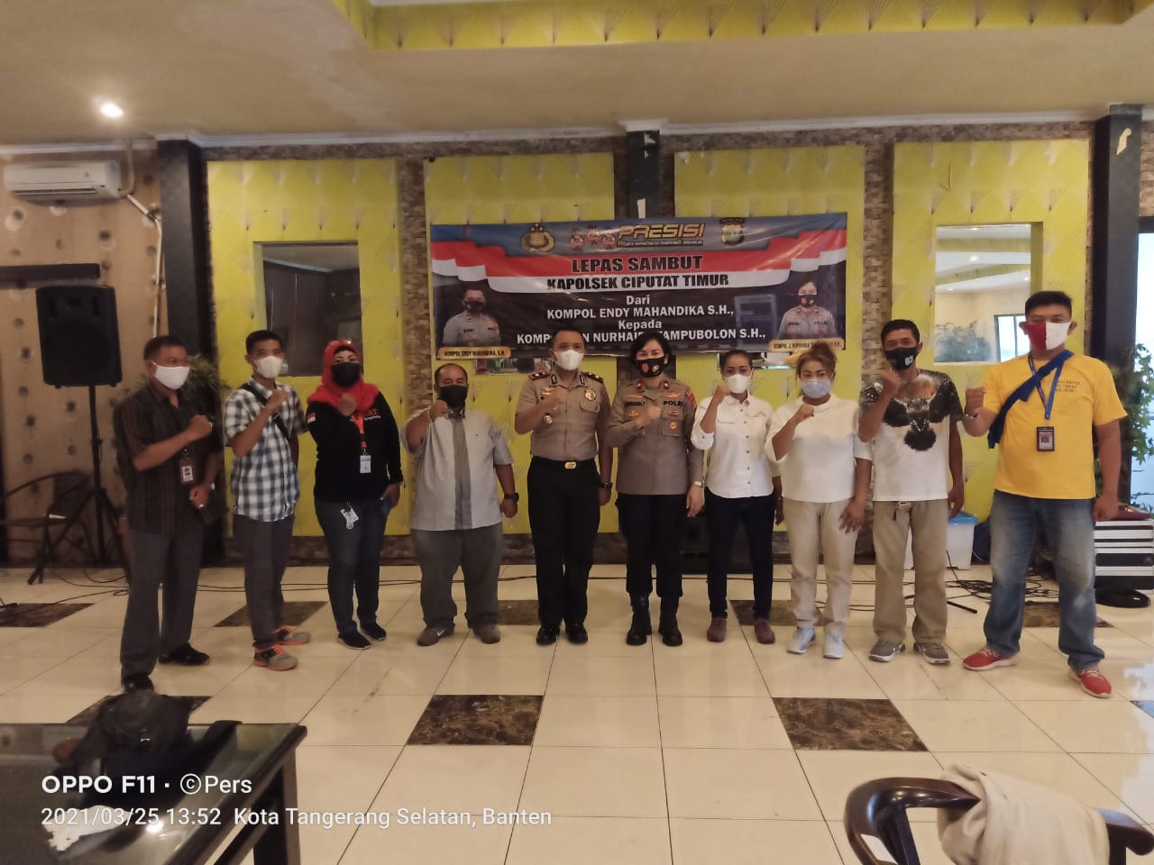 Tangsel, skalalainfo.net | Polsek Ciputat Timur Polres Tangerang Selatan mengelar acara pisah sambut Kapolsek Ciputat Timur bersama unsur pemerintahan, Mitra Polri, TNI dan Tokoh Masyarakat di Pulau Situ Gintung Jl.Kerta Mukti Kelurahan Pisangan Kota Tangerang Selatan, Kamis ( 25/03/2021). Kompol Jun Nurhaida Tampubolon S.H., secara resmi menggantikan Kompol Endy Mahandika S.H., sebagai Kapolsek Ciputat Timur.