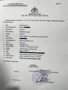 Jakarta, Skalainfo.net| Advokat Jaka Maulana, SH dari LQ Indonesia Lawfirm mendapatkan kuasa dari korban penipuan bernama Serly Kuganda (52) untuk membuat Laporan Polisi dugaan tindak pidana penipuan, sebagaimana diatur dalam Pasal. 378 KUH Pidana. Laporan Polisi (LP) dengan nomor 1671/III/YAN 2.5 /2021/SPKT PMJ, tertanggal 26 Maret 2021, yang dibuat di SPKT Polda Metro Jaya, tertera nama Natalia Rusli dan Chaerul Amir sebagai terlapor dengan Pasal. 378 Penipuan.