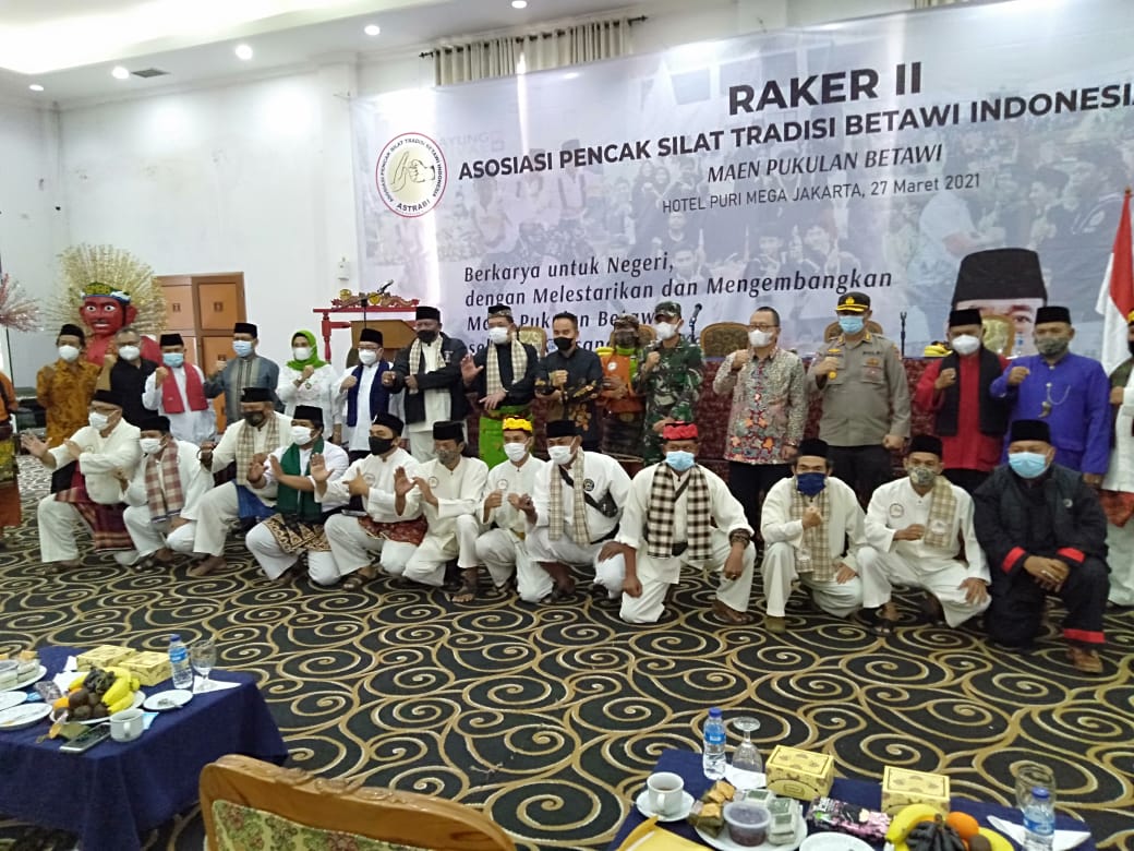 Jakarta, skalainfo.net | Asosiasi Pencak Silat Tradisi Betawi Indonesia ( Astrabi) menyelenggarakan Rapat Kerja II dengan tema berkarya untuk negeri dengan melestarikan dan mengembangkan Maen Pukulan Betawi sebagai khasanah kekayaan budaya Nusantara dari Betawi untuk Indonesia, acara berlangsung di Puri Mega Hotel Jalan Rawamangun No 59 Rawasari Cempaka Putih Jakarta Pusat .Sabtu ( 27/03/2021)