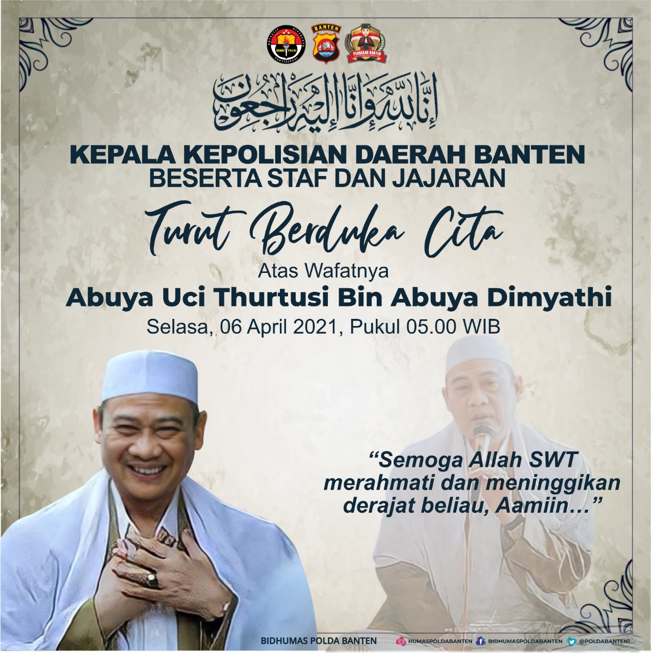 “Innalillahi wa inna illaihi rojiāun, saya dan segenap Jajaran Polda Banten turut berduka dan menyampaikan rasa belasungkawa atas berpulangnya Abuya Uci Turtusi,” kata Rudy Heriyanto.
