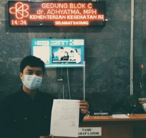 Jakarta, Skalainfo.net| La Ode Muhammad Syai Roziq Arifin Ketua LSM Barisan Orator Masyarakat Kepulauan Buton, (BOMKEPTON) mendatangi Kantor Kementrian Kesehatan RI Di Jakarta Selatan, (6/4/2021).