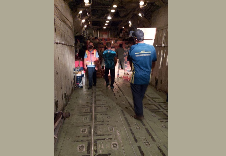 Bantuan sebanyak 12,4 ton diterbangkan dengan menggunakan pesawat angkut TNI AU C-130 Hercules A-1316 dari Skadron Udara 31 Halim Perdanakusuma. Bantuan tersebut berupa sembako, pakaian, selimut, biskuit, mie instant, sarung, susu bayi, masker, handuk dan genset.