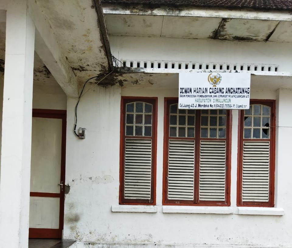 Pematangsiantar, Skalainfo.net | Gedung Juang 45 Pematangsiantar dan Kabupaten Simalungun adalah satu lokasi terletak di Jl. Merdeka no. 3 Pematangsiantar yang hanya berjarak sekitar 30 meter dari Kantor Walikota Pematangsiantar sebagai Pusat menjalankan roda Pemerintahan sa’at ini kondisinya sangat memperihatinkan.