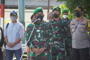 Hal tersebut, senada yang disampaikan Danrem 071/Wijayakusuma Kolonel Inf Dwi Lagan Safrudin, S.I.P., didampingi Dandim 0701/Banyumas Letkol Inf Chandra, S.E., M.I.Pol., Wakapolresta Banyumas AKBP Kristianto Yoga Darmawan, S.I.K., M.Si., serta Ketua Pegiat UMKM Banyumas saat apel bersama pelepasan Satgas Pendisiplinan Protokol Kesehatan Kabupaten Banyumas dan penyerahan bantuan sosial secara simbolis kepada masyarakat, di Jalan Merdeka Purwokerto, Banyumas. Jumat (16/4/2021).