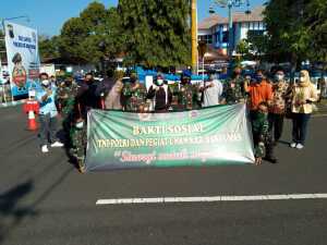 Purwokerto, slalainfo.net | Guna mencegah penyebaran Covid-19 di Banyumas, TNI dan Polri Banyumas bersama pegiat UMKM Banyumas, bersinergi membantu masyarakat yang terdampak Covid-19.