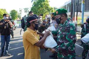Dijelaskan Danrem, dampak akibat pandemi Covid-19 tidak hanya menimbulkan persoalan kesehatan saja, namun berpengaruh ke berbagai bidang baik ekonomi maupun sosial masyarakat yang terdampak. Untuk itu, TNI-Polri peduli Covid-19 dengan melibatkan para Babinsa dan Bhabinkamtibmas serta komponen masyarakat diberangkatkan untuk memberikan bantuan sosial membantu meringankan beban masyarakat sekaligus pendisiplinan protokol kesehatan. (Suratman/red)