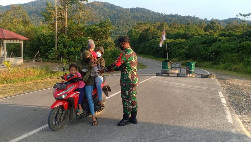 Sambas, Skalainfo.net| Sambil melaksanakan kegiatan sweeping kendaraan, personel Satgas Pamtas RI-Malaysia Yonif 642/Kapuas turut membagikan takjil buka puasa kepada pengendara yang melewati Pos Dalduk Sei Tengah di Jalan Negara Aruk-Temajuk, Dusun Sei Tengah, Kecamatan Paloh, Kabupaten Sambas, Kalimantan Barat, (24/4/2021).